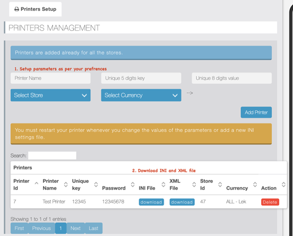 - Navigate to the printer setup panel in your XDelivery Pro module admin